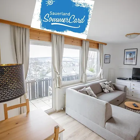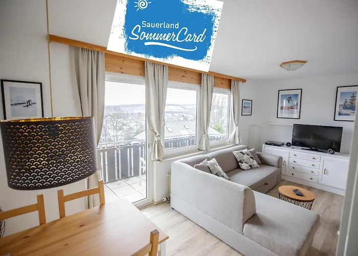 The 1-room Winterberg View - Balkon Mit Suedblick - Zentrale Lage - Eigener Parkplatz Apartment is situated in the Ortsmitte district, 1.5 km from the Winterberg Ski Lift Carousel, and overlooks the mountain. If you have a trip planned to Winterberg for skiing, the apartment includes a ski storage room.